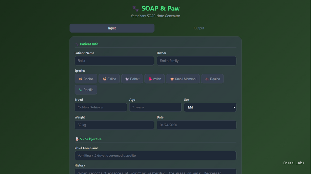 SOAP & Paw - Veterinary SOAP Note Generator