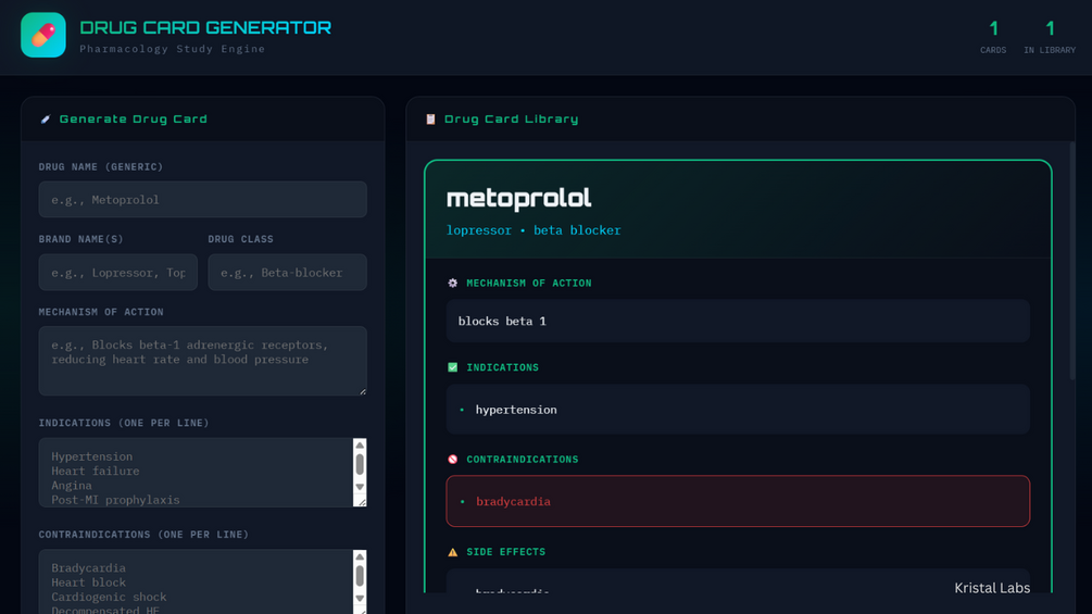 Drug Card Generator lets you build beautiful, structured pharmacology cards in seconds.